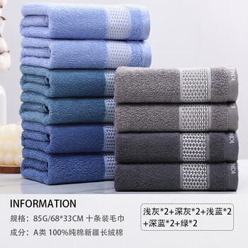 金号纯棉毛巾 A类全棉吸水洗澡洗脸毛巾 素色洁面巾10条68*33cm