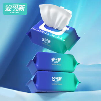 安可新 75%酒精湿巾80片*3包 杀菌率99%湿纸巾加厚珍珠纹家用卫生湿巾