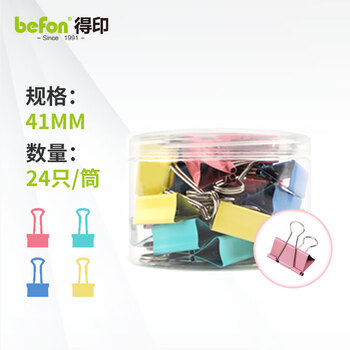 得印长尾夹24只41mm大号2#燕尾夹彩色纸票夹金属铁夹子票据单据小夹子文具办公用品24只/筒 4297