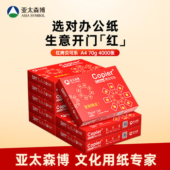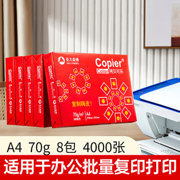 亚太森博红拷贝可乐A4纸 70g 500张*8包 办公用纸 双面多功能复印纸 4000张整箱【专业造纸厂牌】