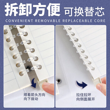 文谷(Wengu)a5/60张可拆卸活页本 小学生卡通笔记本子文具高颜值小清新可爱本子塑料扣环横线本 B0193(A5)A