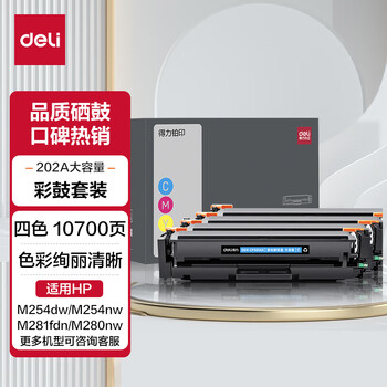 得力(deli)202a硒鼓 CF500A硒鼓适用惠普M281FDW硒鼓 M254DW M254NW M281FDN M280NW cf500a带芯片大容量四色硒鼓套装