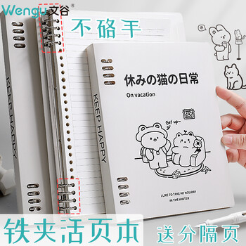 文谷(Wengu)b5/60张不硌手可拆卸铁夹活页本 大容量加厚笔记本本子学生用考研记事本横线手账本 BI018(B5)B