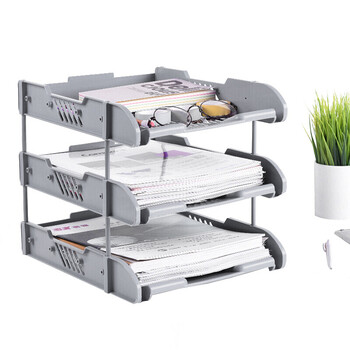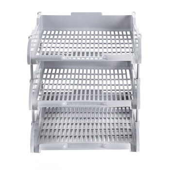 递乐 三层网格文件盘文件栏文件架文件座办公收纳塑料收纳架办公文具 灰色1818
