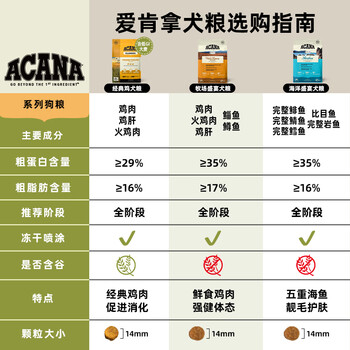 愛肯拿(ACANA)狗粮 海洋盛宴 成犬幼犬 靓毛鱼肉全价犬粮原装进口2kg 效期26/9