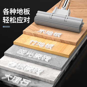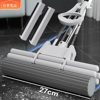 百世优品 胶棉拖把27cm2头双排滚轮家用一拖净免手洗懒人海绵地拖吸水拖布