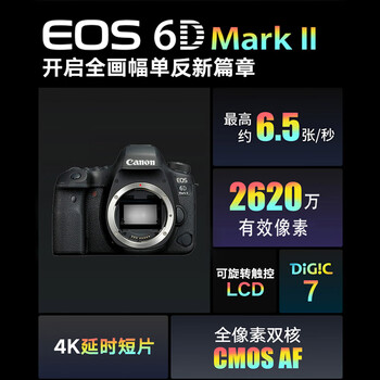 佳能(Canon)6D2 专业全画幅单反相机 4K视频拍摄 高清人像拍摄6D二代 佳能复古数码单反相机 佳能6d2 机身