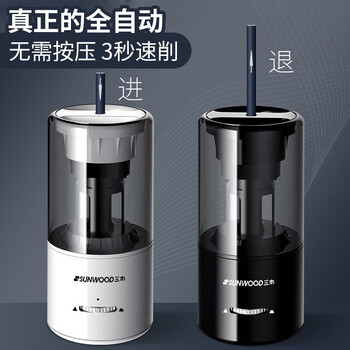 三木(SUNWOOD)全自动电动削笔器/铅笔机/学生/卷笔刀/转笔刀 自动进铅 USB Type-c充电可调粗细 白色 5932