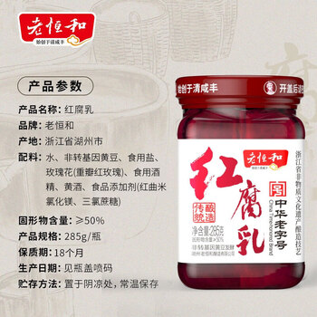老恒和 红腐乳285g 下饭菜火锅蘸料 拌面拌饭酱 传统工艺 红方豆腐乳