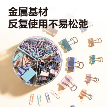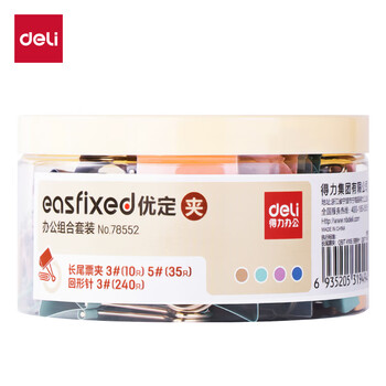 得力(deli)三合一组合套装(19mm小号票夹35枚 32mm中号票夹10枚 29mm回形针240枚)/盒 78552