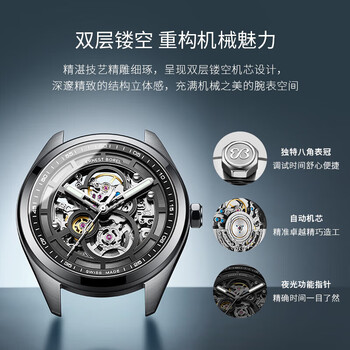依波路(ERNEST BOREL)瑞士手表男 生日礼物 年轻时尚双层镂空设计机械男表送男友E0718
