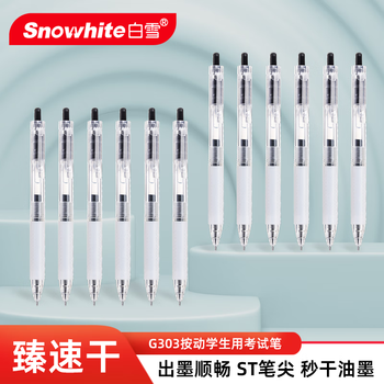 白雪(snowhite)G-303中性笔学生用考试刷题做笔记教师专用简约清新文艺无印风手账笔0.5mm按动黑色12支