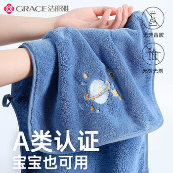 洁丽雅(Grace)7A级抗菌抗阴干毛巾2条 洗澡洗脸专用吸水男女生柔软干发擦手毛巾