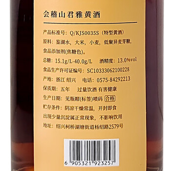 会稽山 君雅 半干型 绍兴黄酒 500ml*6瓶 整箱装