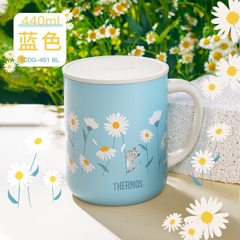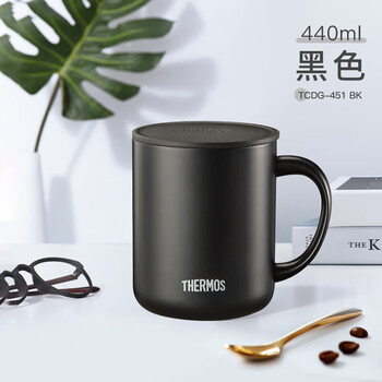 THERMOS膳魔师保温杯马克咖啡杯440ml带盖茶杯男女情侣水杯子TCDG-451 BK