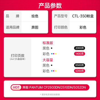 绘色适用奔图CM7115DN粉盒CM7000FDN墨盒CP2510DN硒鼓CP2500DN CM7100FDN显影仓CTL-350H智享版 大容量 黑色