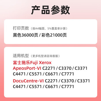 玖六零富士施乐C3371粉盒适用VI4471 C5571墨盒C2271 C2273 C3370六代碳粉盒C6671 7771复印机墨粉筒硒鼓大容量套装