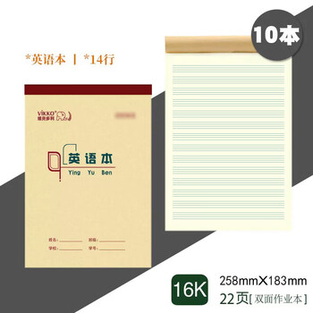 多利博士10本 英语本16k22张小学生初中高中四线三格英文笔记本本子英语簿河北统一竖翻大作业本