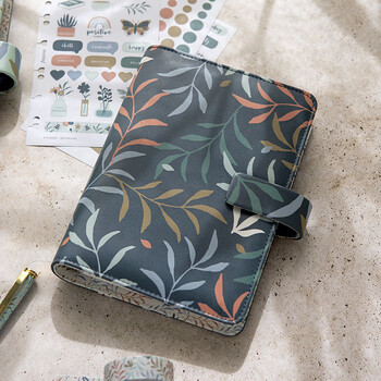 Filofax手帐本英国进口记事本高档软皮面活页日记本personal A6 植物印花系列-蓝绿色022645
