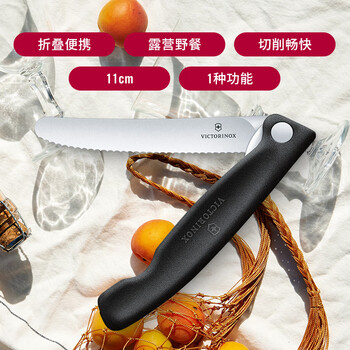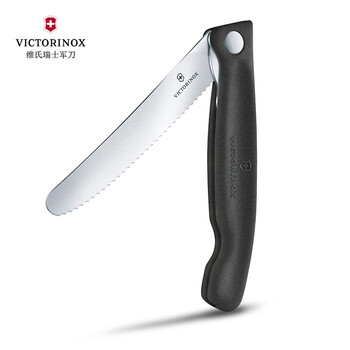维氏瑞士军刀厨具11cm水果野餐刀波浪刃削皮刀黑色6.7833.FB 瑞士原产