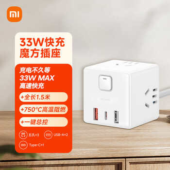 小米(MI)魔方转换器Pro 33W有线快充插座USB插排插线板/排插/拖线板/接线板适用小米17手环/手表/红米K90