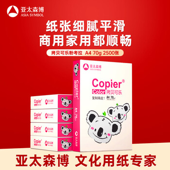 亚太森博拷贝可乐(粉考拉) A4纸 70g 500张*5包 双面打印 复印草稿纸 2500张整箱【造纸源头厂牌】
