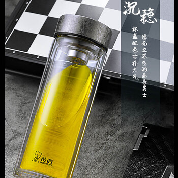 希诺(HEENOOR)双层玻璃杯水杯隔热耐热茶杯车载随手杯商务办公杯 XN-6578 300ML