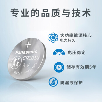 松下(Panasonic)CR2016进口纽扣电池电子3V适用手表摩托汽车钥匙遥控器CR2016 五粒