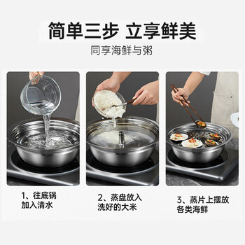 炊大皇304不锈钢蒸锅 蒸汽锅桑拿锅海鲜锅 蒸涮炖煮复底蒸火锅 26cm