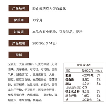 轻食兽巧克力乳清蛋白威化代餐能量棒 0反式健康早餐饼干休闲零食280g