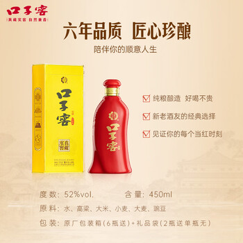 口子窖六年型 兼香型白酒 52度 450ml*6瓶 整箱装 婚庆喜宴 送礼