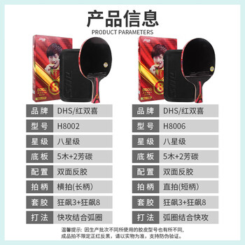 运动户外---体育用品---乒乓球拍红双喜(DHS)H8002