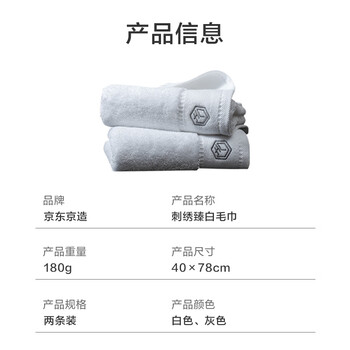 京东京造 180g加厚臻柔毛巾 五星级酒店A类纯棉成人男女大面巾 2条装 臻白