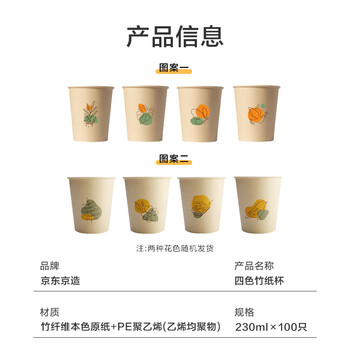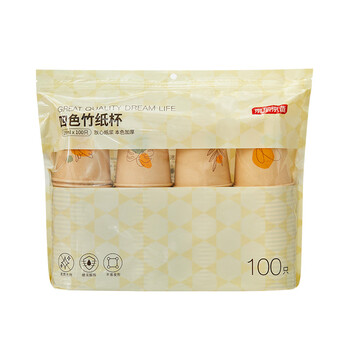 京东京造 纸杯一次性杯子 加厚四色竹纤维烧烤露营家用水杯230ml【100只】