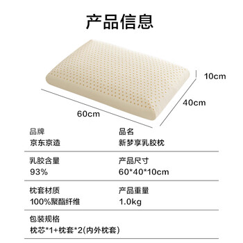 京东京造新梦享乳胶枕 93%天然乳胶 泰国进口成人护颈颈椎枕头 舒适面包枕