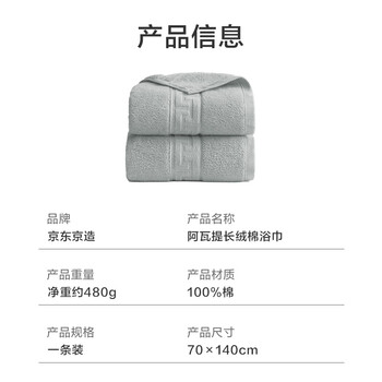 居家布艺---毛巾/浴巾/浴袍---浴巾京东京造京东京造 国标A类 新疆长绒棉浴巾480g 全棉浴巾加厚柔软 阿瓦提浴巾 灰色单条装