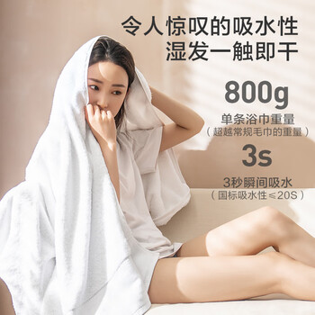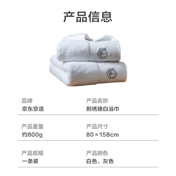 京东京造 800g超厚臻柔浴巾 五星级酒店A类成人加大加厚浴巾 单条 臻白