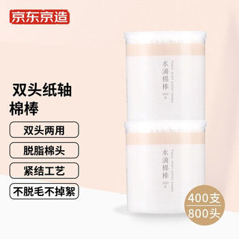 京东京造 双头水滴棉棒 200支*2罐 掏耳朵棉签纸轴化妆棉签螺旋头清洁棉棒