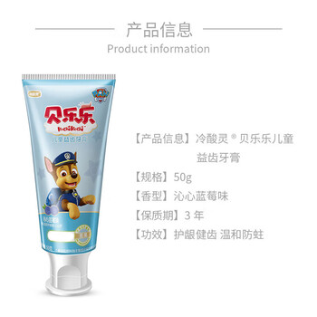 冷酸灵贝乐乐儿童益齿牙膏50克 换牙期儿童2-12岁无氟牙膏 沁心蓝莓味