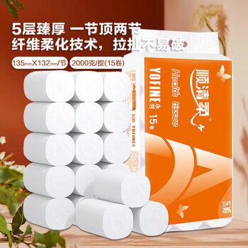顺清柔无芯卷纸国际版5层133.3g*15卷 冲厕易溶解厕纸卫生纸(2kg/提)
