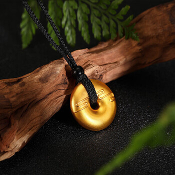 梦金园 足金亿纯古法平安扣吊坠男女款礼物