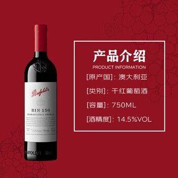 奔富(Penfolds)Bin150玛拉南戈西拉干红葡萄酒 原瓶进口红酒 750ml*1瓶【澳版】