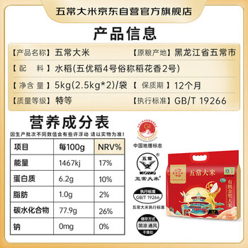 五常大米 官方溯源保真 京贡1号金奖大米 有机稻花香2号 东北大米 5kg/10斤/十斤×1
