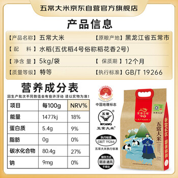 五常大米官方溯源 京贡1号 特等五常大米10斤原粮稻花香2号当季新米真空装