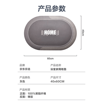 京东京造 科技绒地垫 卫生间浴室吸水防滑脚垫子 灰色60*40cm
