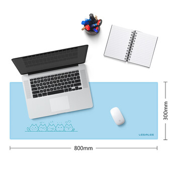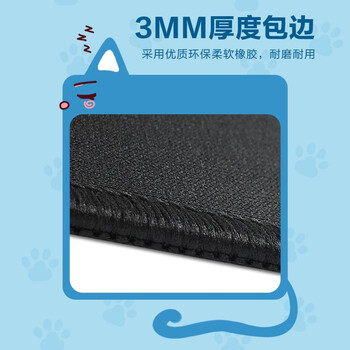 飞遁(LESAILES)800*300*3mm可爱团子猫咪蓝色游戏电竞鼠标垫 超大电脑键盘桌垫 易清洁