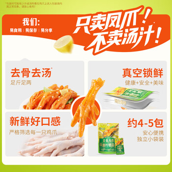 百草味双重柠檬蒜香去骨凤爪75g约4包无骨鸡爪去骨脱骨解馋即食休闲零食