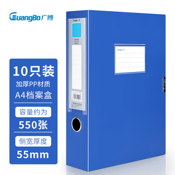 广博(GuangBo)10只55mm加宽塑料档案盒 加厚文件盒资料盒 财务凭证收纳盒 办公用品A88005蓝色