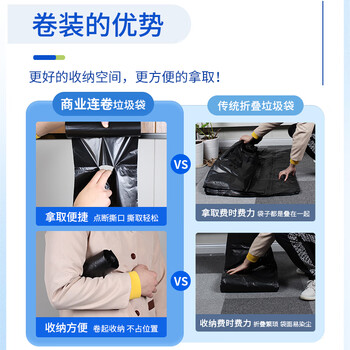苏诺平口式垃圾袋黑色60*80cm*90只单面0.9丝卷装物业商用家用大号