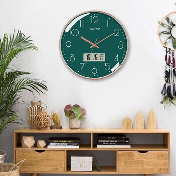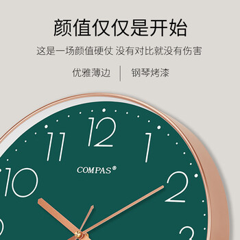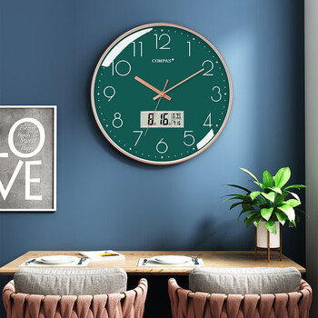 康巴丝(Compas)客厅钟表万年历石英钟表挂墙时钟日历挂钟 C3219AY墨绿色 35cm